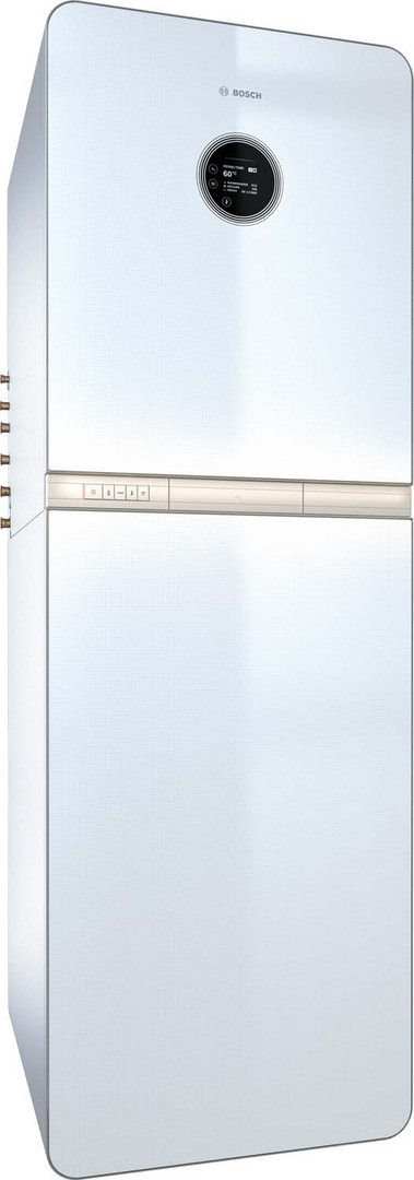 mit Glas-Design, funktionaler SplitRegler, CW 400 (Zubehör) ins Geräteschubfach einbaubar, auch nachträglich mit der Funktionalität der CerapurSolar zu Verwendung regenerativer Energien aufzuwerten (Zubehör), Anschlusssätze (Zubehör) zur Seite (Crossmatrix) und nach oben verfügbar, vorkonfigurierte Hydraulikzubehöre für 1x und 2x Heizkreise mit hydraulischer Weiche, Anschlusszubehör für einen Heizkreis mit Systemtrennung verfügbar, Modulationsbereich bis 1:10, Aluminium-Silizium-Wärmeblock mit optimierter Zugänglichkeit bei der Wartung, Auslieferung vorjustiert auf H-Gas, Anpassung auf L-Gas durch Einstellung an der Skala, Touchscreen-Bedienung auf Gerätevorderseite, Gas-Venturi für hohe Modulation und einfache Gasart-Anpassung, 100 l und 150 l Schichtladespeicher, Hocheffizienzpumpen für Heizung und Schichtladekreis, 3-Wege-Ventil, automatischer Schnellentlüfter, Sicherheitsventil, Temperaturbegrenzer