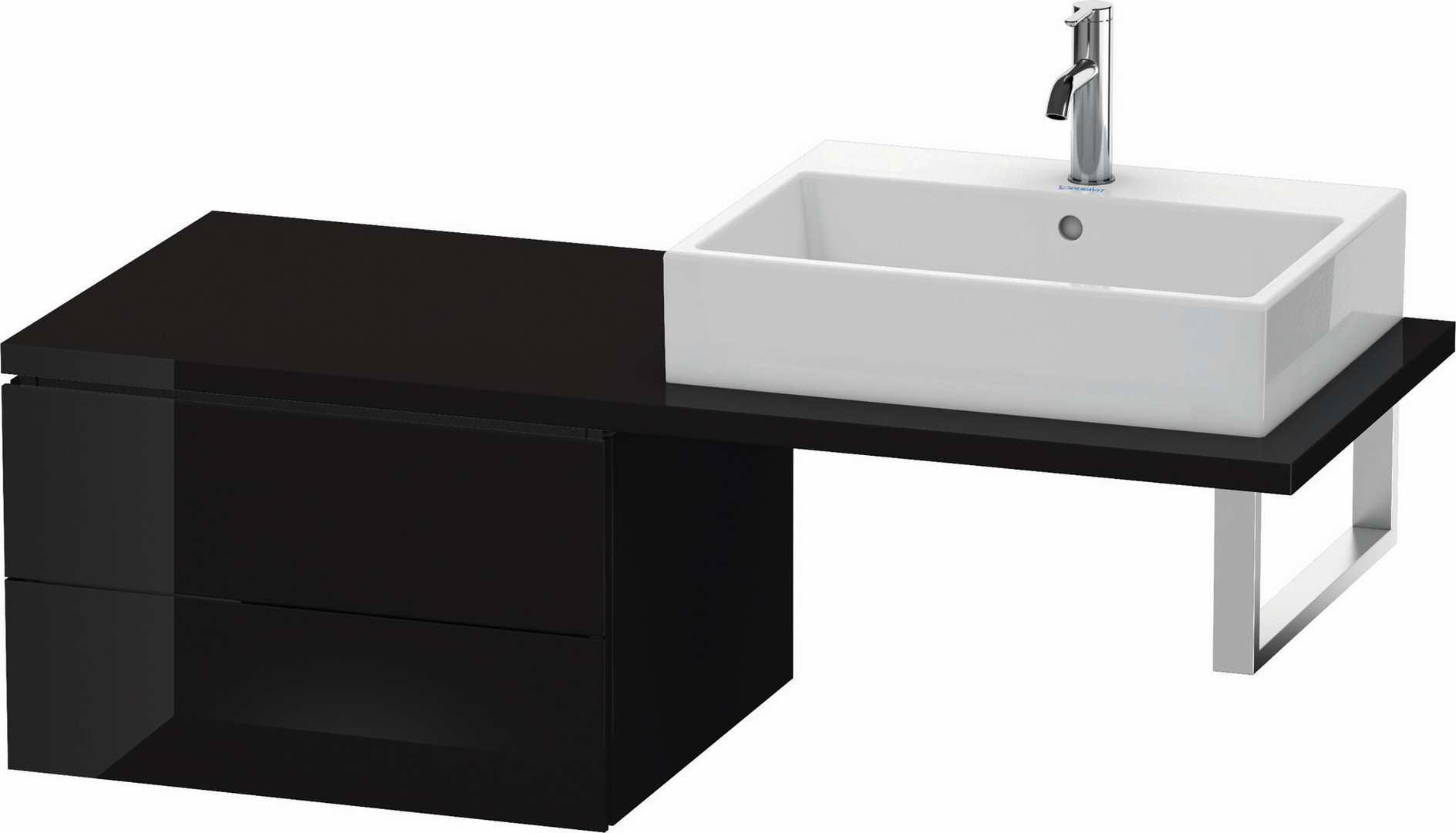 Duravit Unterschrank L-Cube 62 x 54,7 cm, schwarz hochglanz, für Konsole, 2 Schubkästen