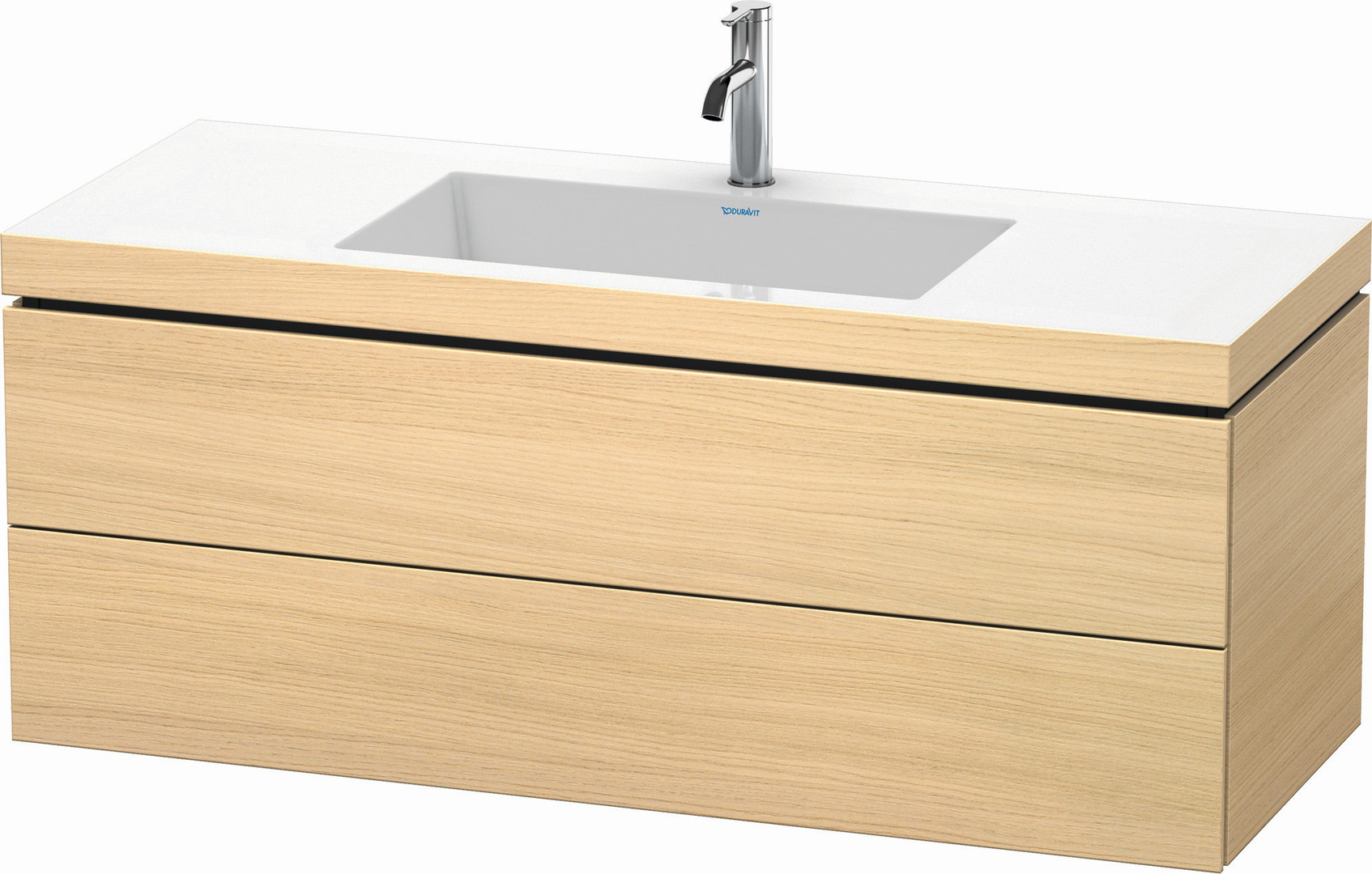 Duravit Waschtisch-Unterschrank c-bonded L-Cube 120 x 48 cm, 1 Hahnloch, mediterane eiche, 2 Schubkästen, wandhängend