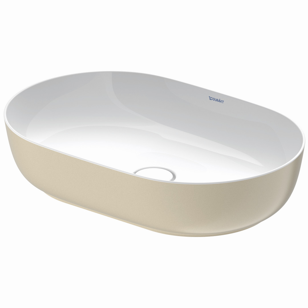 Duravit Aufsatz-Waschtisch Luv 60x40cm, geschliffen, ohne Hahnloch, Überlauf, Hahnlochbank, weiß/sand seidenmatt