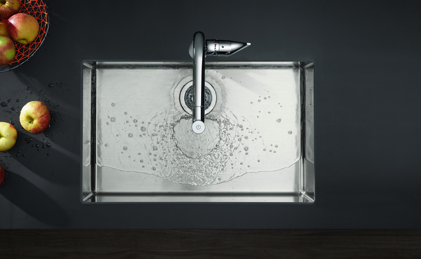 ComfortZone 320, Schwenkbereich einstellbar in 2 Stufen auf 110° oder 150°, Laminarstrahl, Select-Knopf zum An- und Abstellen des Wasserstrahls, MagFit magnetische Brausehalterung, max. Durchflussmenge bei 3 bar 8 l/min, Keramikmischsystem, Temperaturbegrenzung einstellbar, mit Rückflussverhinderer, für Durchlauferhitzer geeignet, sBox für geschützte Schlauchführung im Unterschrank, Auszugslänge bis zu 760 mm, SoftStart deutlich reduziertes Spritzverhalten durch sanften Start des Wasserstrahls