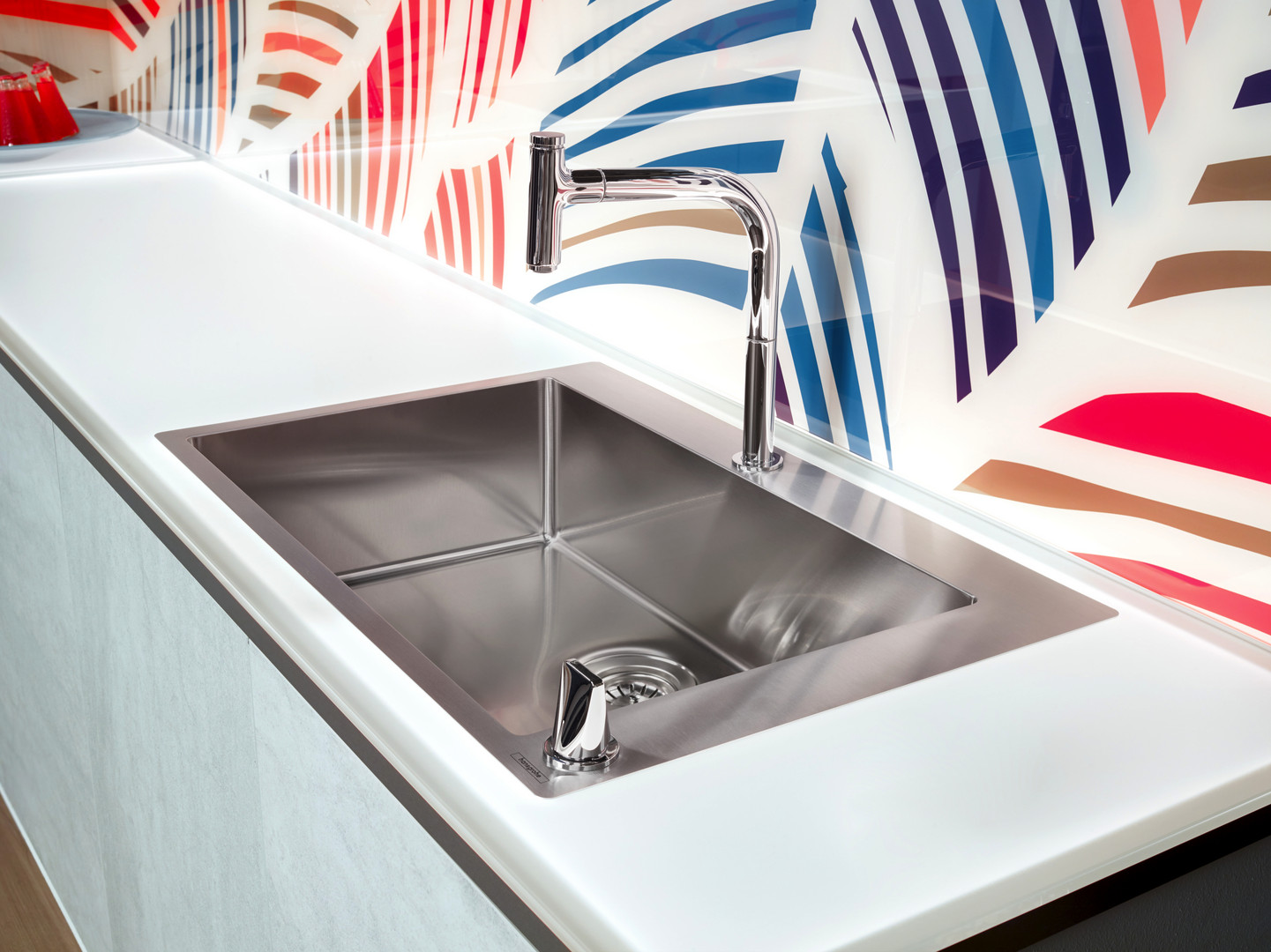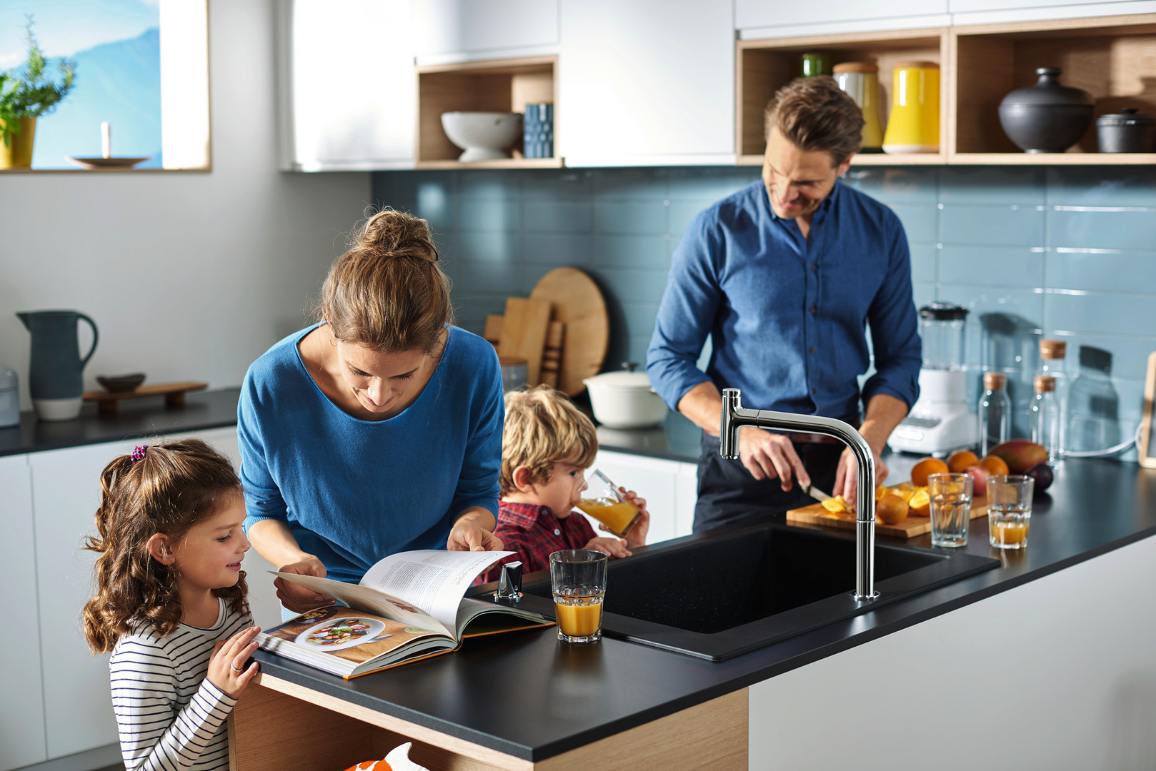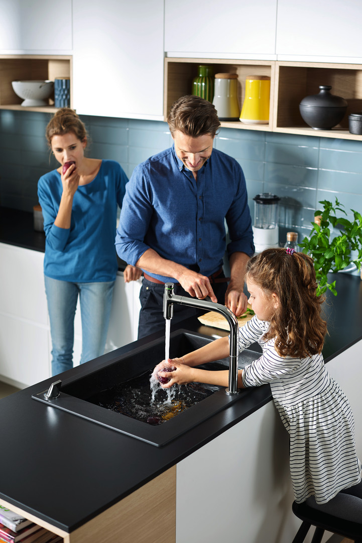 bestehend aus 2-Loch-Einhebel-Küchenmischer, Bedienelement, Schlauchbox, ComfortZone 200, Schwenkbereich einstellbar in 2 Stufen auf 110° oder 150°, flexible Positionierung Bedienelement, 2 Hahnlochbohrungen mit Ø 35 mm erforderlich, Normalstrahl, Select-Knopf zum An- und Abstellen des Wasserstrahls, MagFit magnetische Brausehalterung, max. Durchflussmenge bei 3 bar 8 l/min, Keramikmischsystem, mit Rückflussverhinderer, für Durchlauferhitzer geeignet, sBox für geschützte Schlauchführung im Unterschrank, Auszugslänge bis zu 760 mm, AirPower Technologie, Quick Clean Antikalksystem