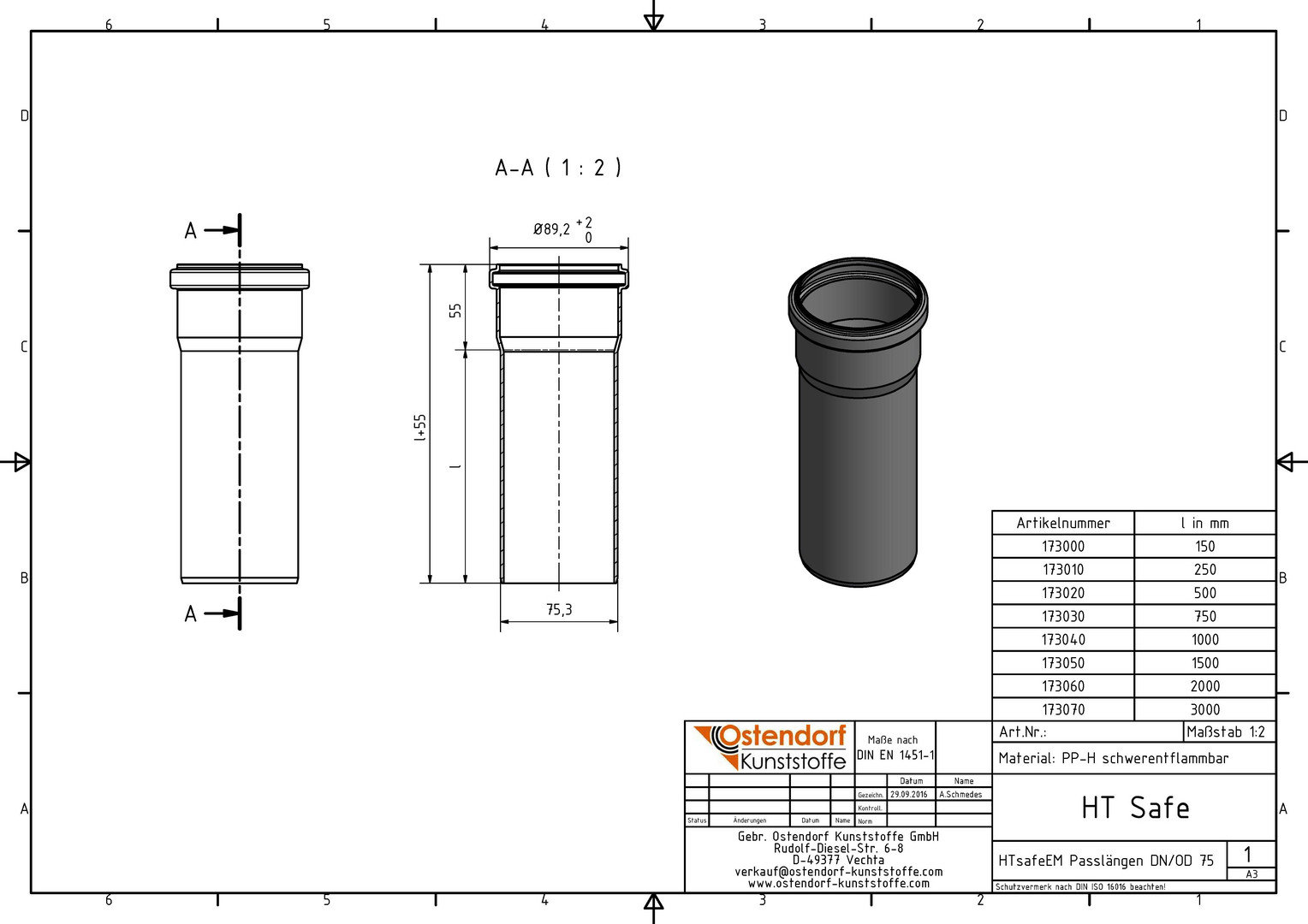 Ostendorf HTsafe Rohr EM DN/OD 75, 2000 mm
