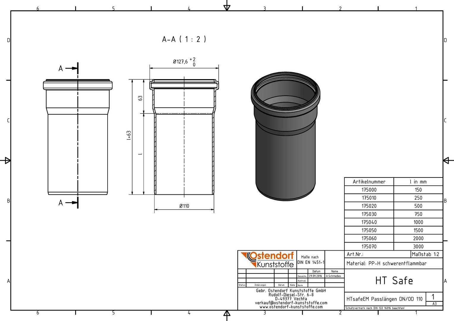 Ostendorf HTsafe Rohr EM DN/OD 110, 1000 mm