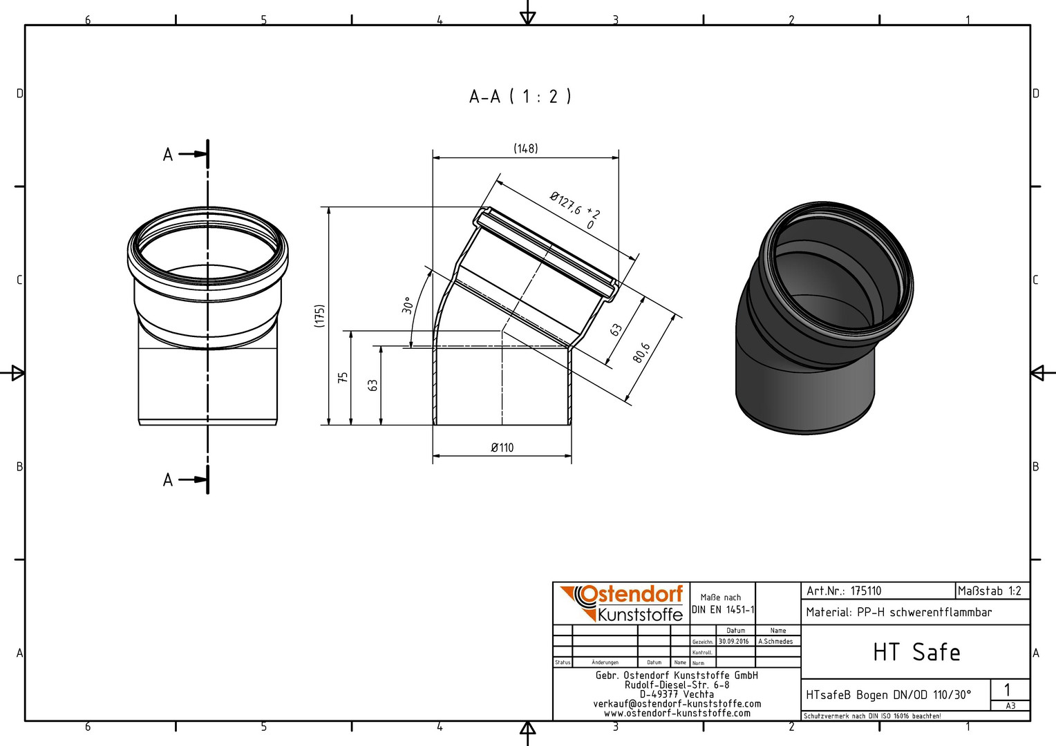 Ostendorf HTsafe Bogen B DN/OD 110, 30°