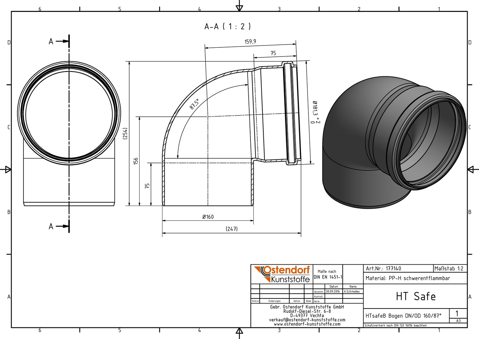 Ostendorf HTsafe Bogen B DN/OD 160, 87,5°