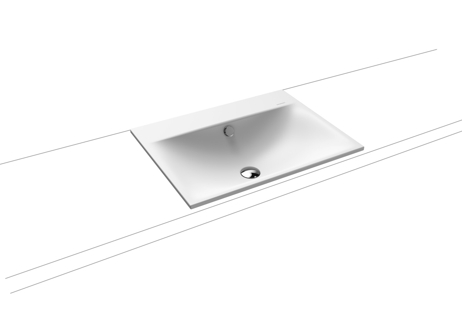 Kaldewei Einbau-Waschtisch SILENIO 3037 60x46cm, 1 Hahnloch, chrom, Perl-Effekt, weiß W48028