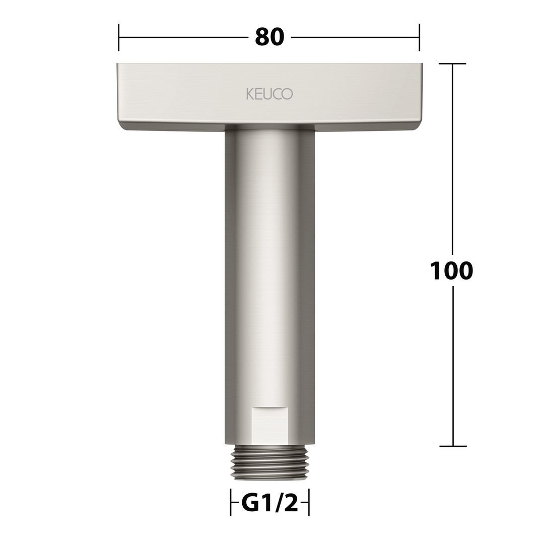 KEUCO Brausearm Ausladung 100 mm, nickel gebürstet, Rosette eckig, Deckenmontage