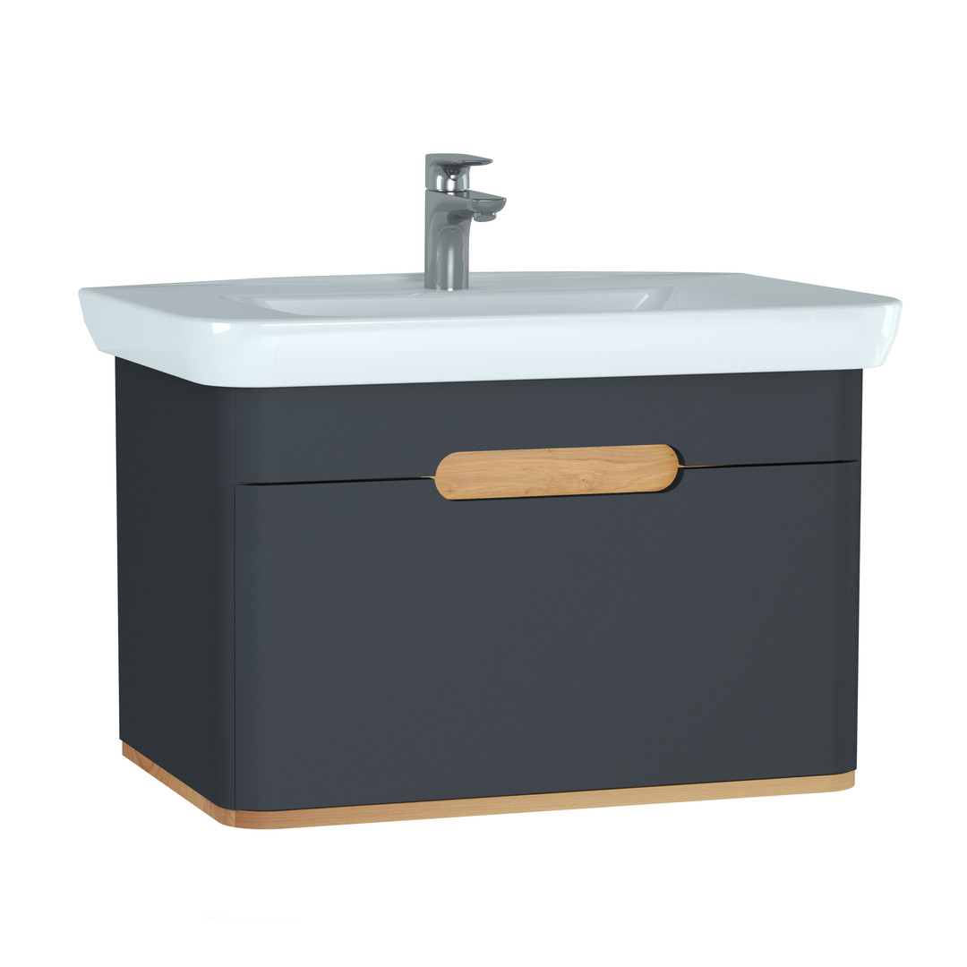 VitrA Bad Waschtisch-Möbel-Set Sento 78x48,5x52cm, 1 Vollauszug, anthrazit matt, Dekor W518152