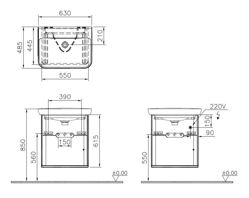 VitrA Bad Waschtisch-Möbel-Set Sento 63x48,5x68,5cm, 2 Vollauszüge, hellgrau matt, Dekor W518196