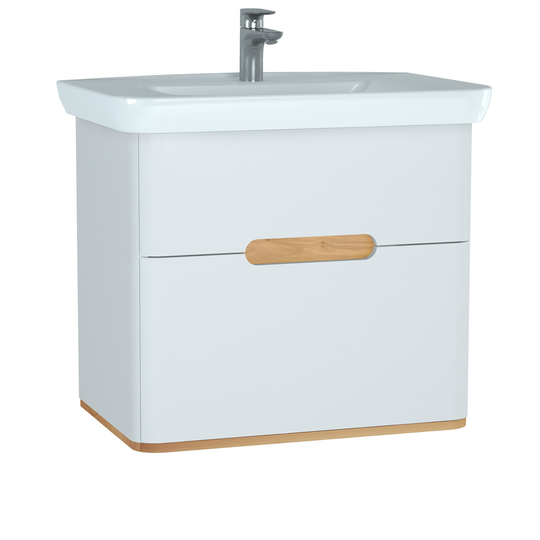 VitrA Bad Waschtisch-Möbel-Set Sento 78x48,5x68,5cm, 2 Vollauszüge, weiß matt, Dekor