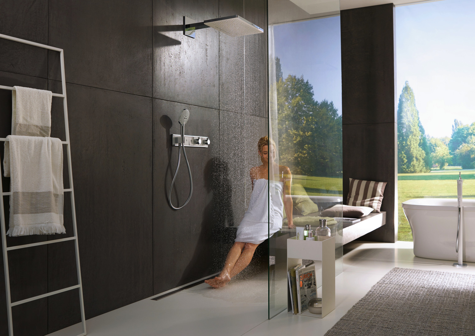 hansgrohe Fertigmontageset RainSelect UP-Thermostat, mit integriertem Brausehalter, 3 Verbraucher, weiß/chrom