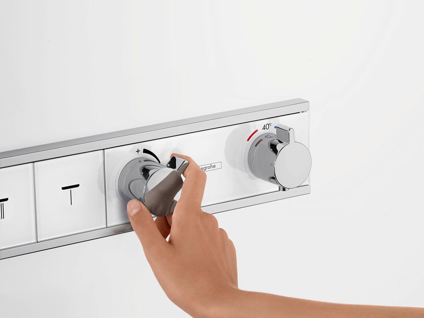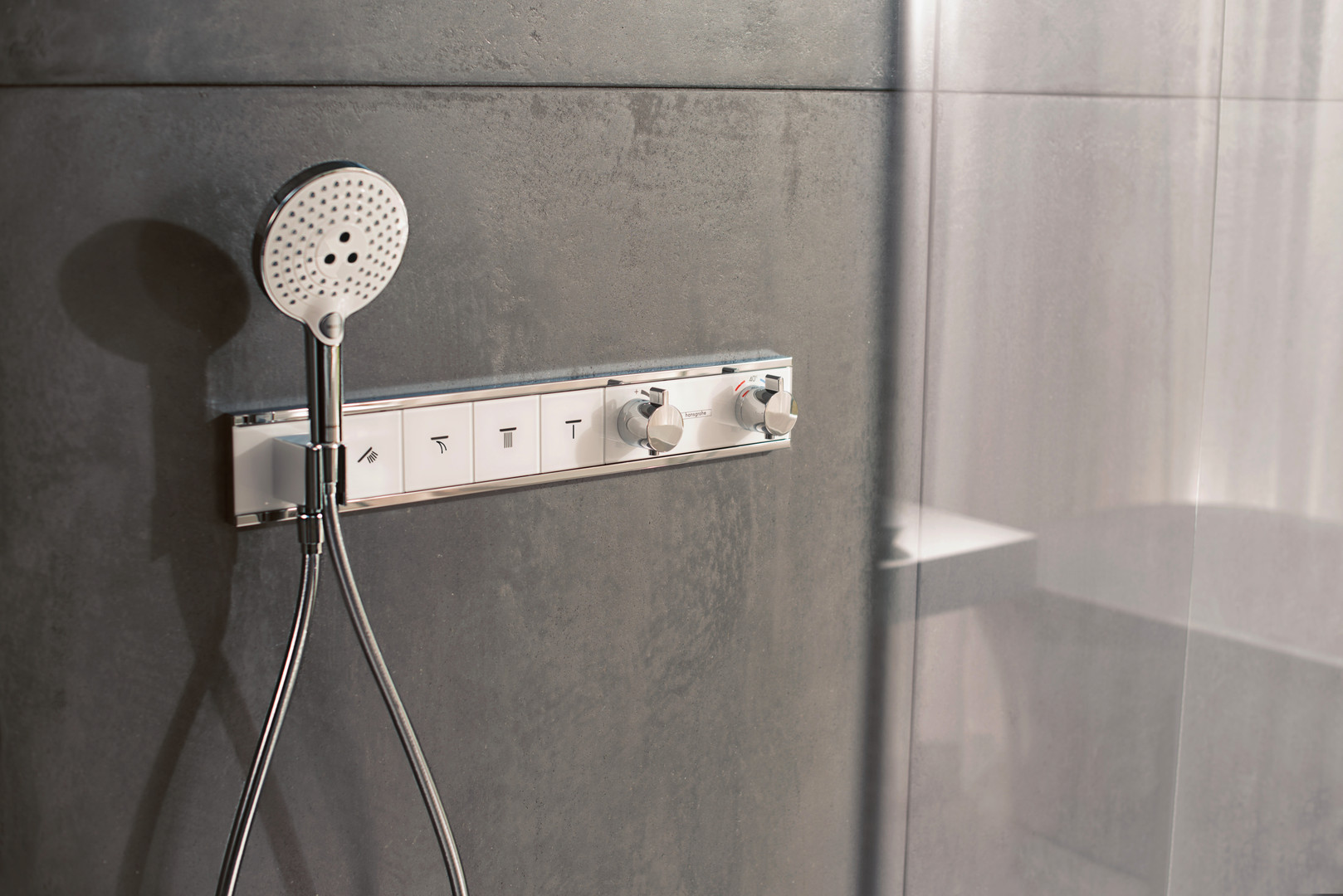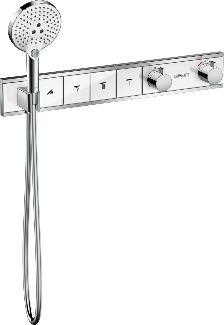 hansgrohe Fertigmontageset RainSelect UP-Thermostat, mit integriertem Brausehalter, 4 Verbraucher, weiß/chrom