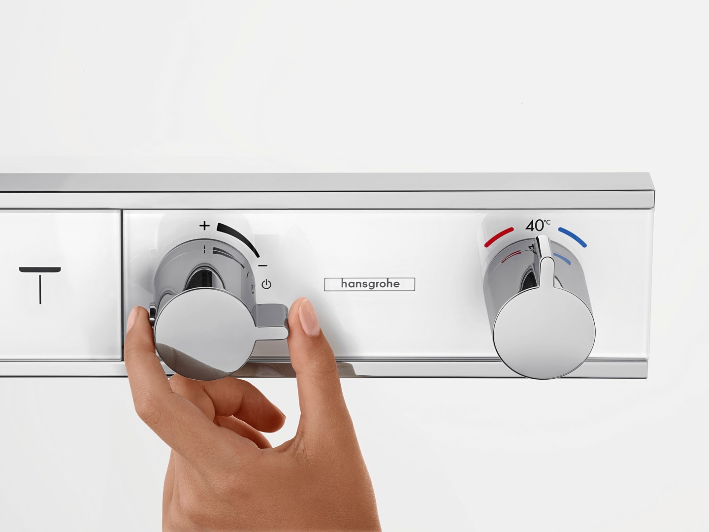 je nach Volumenstrom und Einbausituation ca. 50% Durchflussreduzierung und integrierte Absperrfunktion, gleichzeitige Nutzung von mehreren Verbrauchern, Ein-/Ausschalten von 4/5 Verbrauchern über Select-Button, max. Durchflussmenge bei 3 bar 38 l/min, Durchflussmenge je Verbraucher 26 l/min, Durchflussmenge bei gleichzeitiger Nutzung aller Verbraucher 38 l/min, Thermostatkartusche, Start/Stop Ventil zur Bedienung der Verbraucher, Betriebsdruck min. 1/max. 10 bar, Sicherheitssperre bei 40 °C, Temperaturbegrenzung einstellbar, Rückflussverhinderer, Schlauchmutter für Brauseschläuche mit beidseitig konischer oder zylindrischer Mutter, Anschlussart Grundkörper, Geräuschgruppe I, Durchflussklasse B