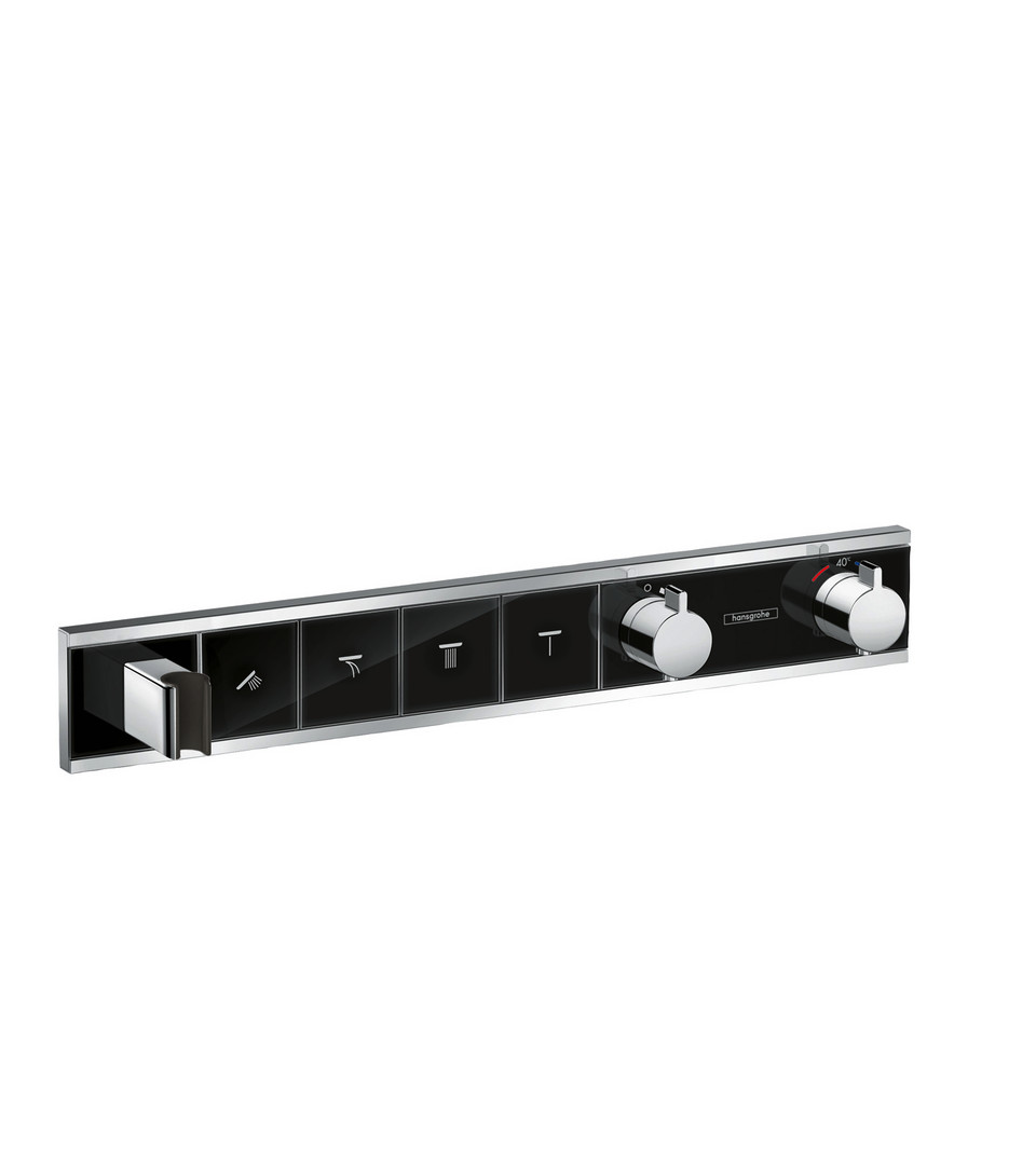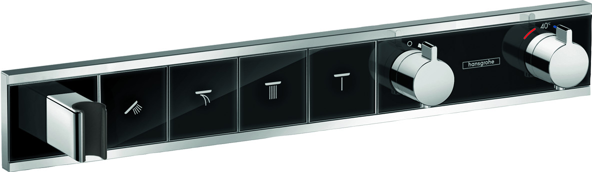 hansgrohe Fertigmontageset RainSelect UP-Thermostat, mit integriertem Brausehalter, 4 Verbraucher, schwarz/chrom