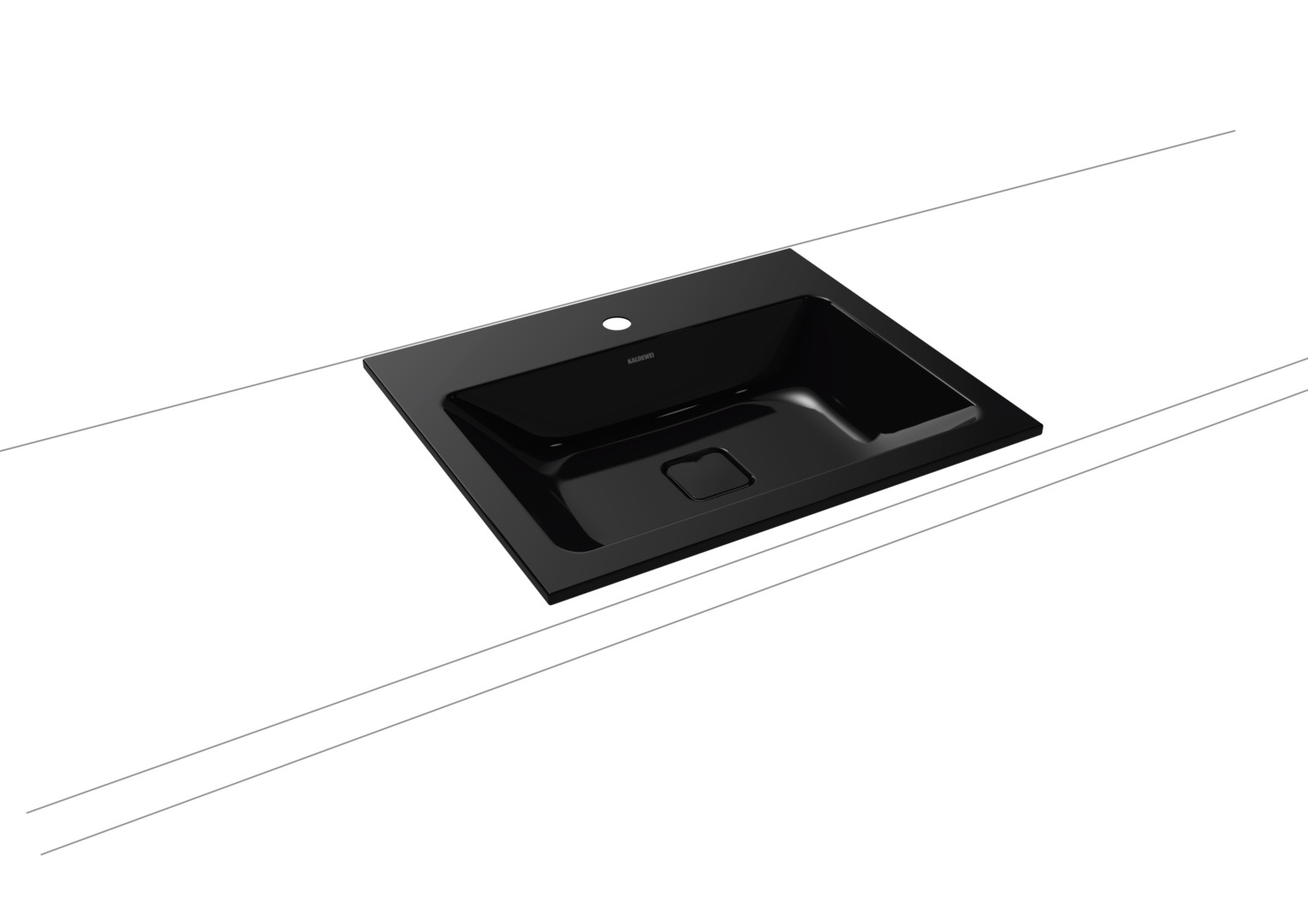 Kaldewei Einbau-Waschtisch CONO 3080 60x50cm, 1 Hahnloch, chrom, Perl-Effekt, schwarz