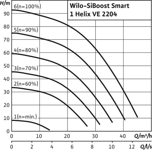 Hocheffiziente/anschlussfertige Wasserversorgungsanlage mit einer vertikal angeordneten/normalsaugenden Hochdruck-Kreiselpumpe der Baureihe Helix VE, mit integrierten, luftgekühlten Frequenzumrichtern, zum Einsatz für vollautomatische Wasserversorgung und Druckerhöhung im Zulaufbetrieb (aus dem öffentlichen Wassernetz oder einem Tank, für private, gewerbliche, industrielle und kommunale Anwendungen (eine Reservepumpe ist laut Anforderungen der DIN 1988 und DIN EN 806 vorzusehen), zugelassene Fördermedien sind normalerweise Wasser, die die verwendeten Werkstoffe nicht angreifen (weder chemisch noch mechanisch) und keine abrasiven oder langfaserigen Bestandteile aufweisen wie Trinkwasser/Kühlwasser/Prozesswasser/Löschwasser, mit Einbau- und Betriebsanleitung, integrierter Motorvollschutz über PTC