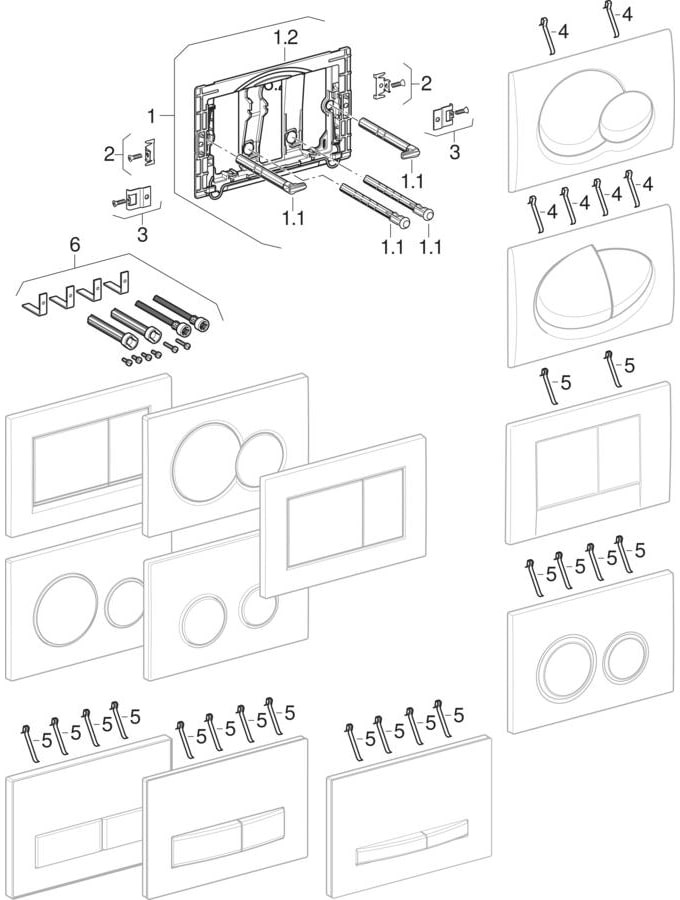 (ex Sigma21), zur Spülauslösung bei Sigma UP-Spülkästen, Betätigung von vorne, Drückerstangen schallgedämmt, werkzeuglose Schnelleinstellung, Betätigungskraft < 20 N, bestehend aus Befestigungsrahmen, 2x Distanzbolzen, 2x Drückerstangen