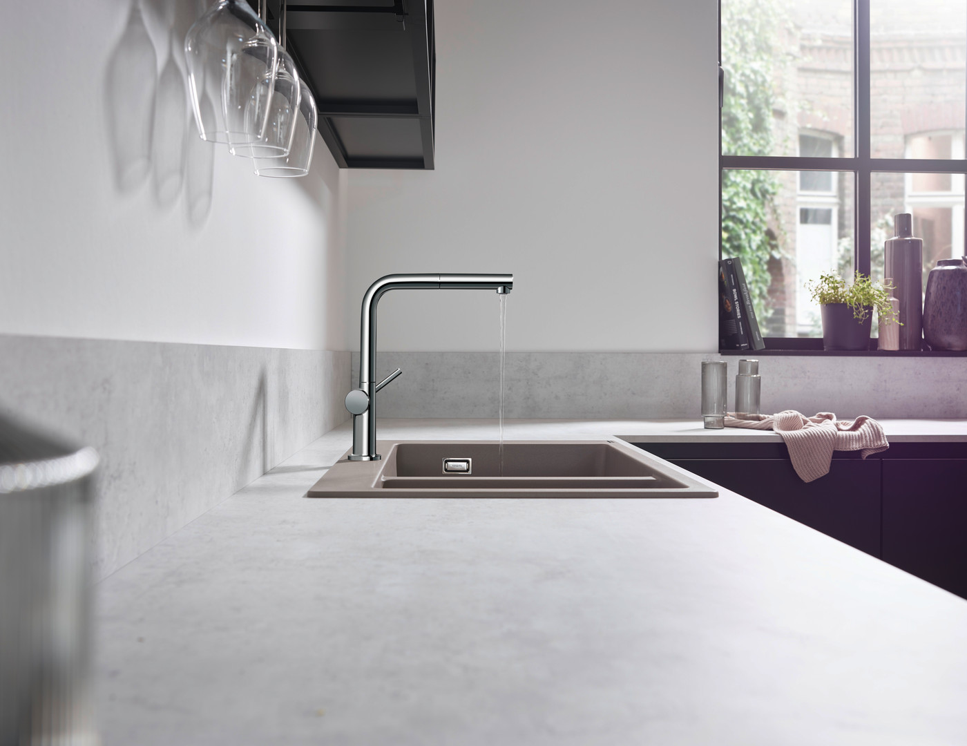 hansgrohe Einbauspüle S510-F635 180/450 750x490mm, 1 Haupt- und 1 Zusatzbecken, betongrau
