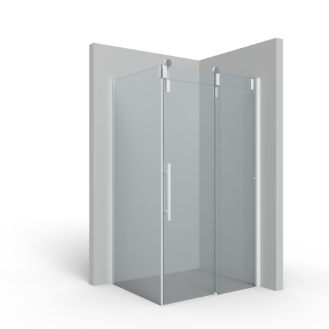 Glas 8 mm ESG transparent, Glaszarge 13 mm VSG, Standardhöhe Oberkante Glaszarge 2120 mm (Glaszarge 120 mm) plus 55 mm für Laufrollen, ein Teil fix, ein Teil schiebbar, optional mit 8 mm hoher Schwallschiene, PALM.free, PALM.fix, PALM.pro, PALM.motion, PALM.isi-clean, optional PALM.nano, PALM.care, durchgehendes Wandbefestigungsprofil mit Verstellbereich