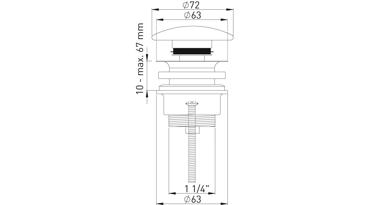 ASW Design-Univeralventil Ø 72 mm, Messing weiß, nicht verschließbar, 1 1/4"xd= 63mm Messing verchromt W348300