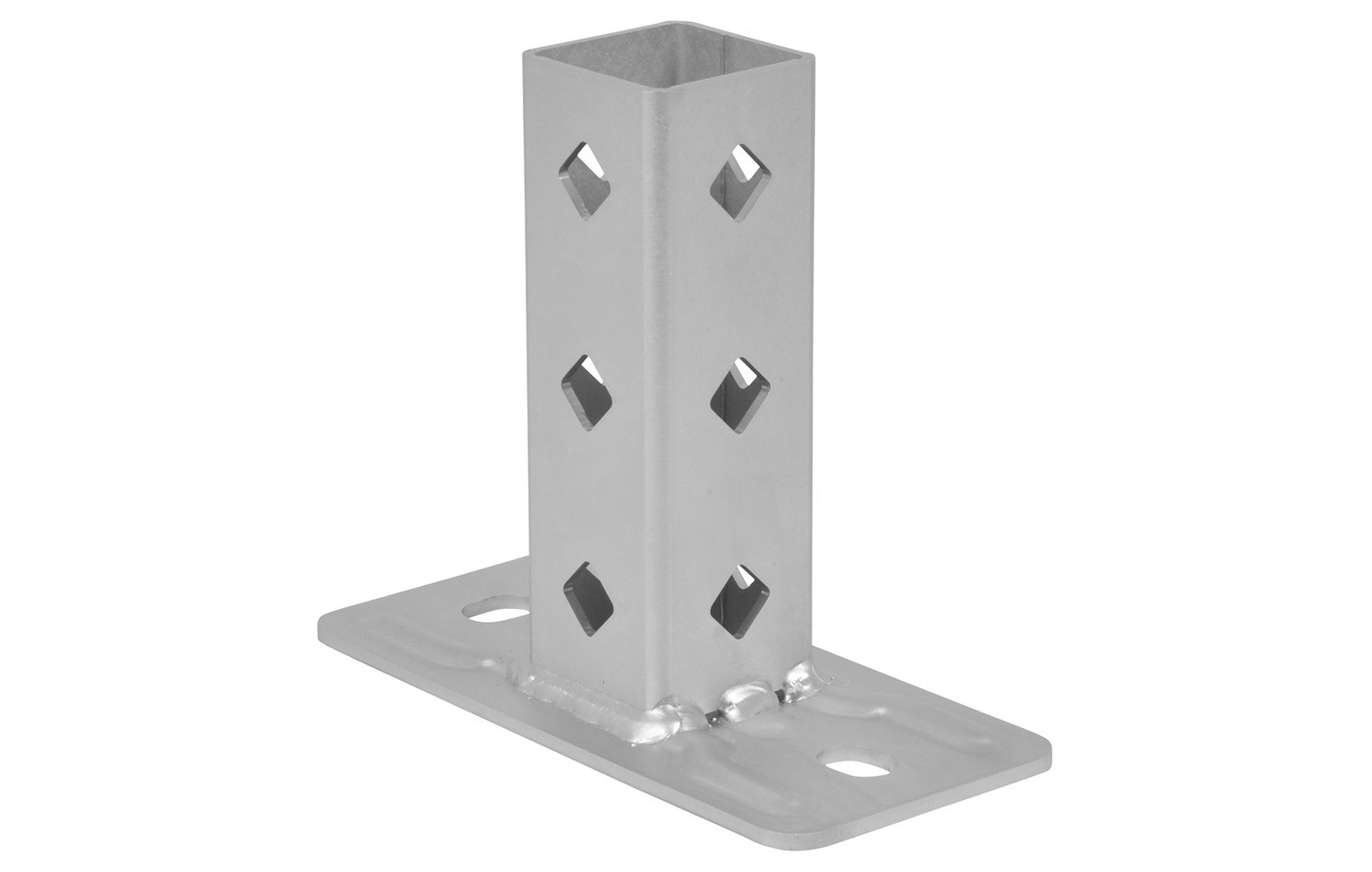 Schwerlast-Grundplatte für Strut-Montageschiene, kombinierbar mit Flügelmuttern und Durchsteckverschraubungen, Art.Nr. 66588641: ausschließlich in Kombination Rail Strut 41x41 + 41x21D, Art.Nr. 66588682: ausschließlich in Kombination Rail Strut 41x82 + 41x41D, auf Strut-Schienen abgestimmtes Lochbild, geschlossenes Vierkantprofil mit erhöhter Biegefestigkeit, Material aus Stahl 1.0332, Oberflächenbeschichtung Walraven BIS UltraProtect 1000 Systemtechnologie, ein System für Installationen im Innen- und Außenbereich, besteht min. 1.000 Std. Salzsprühtest nach DIN ISO 9227