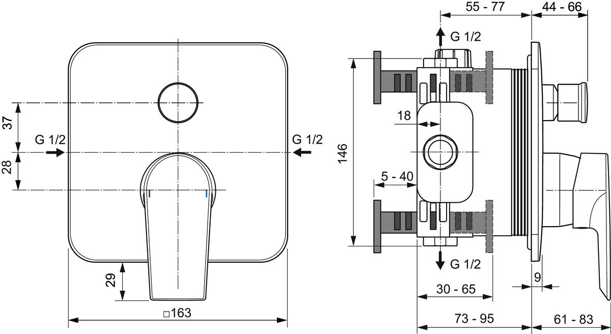 Unterputz Bausatz 2 für Fertigmontage, Griff aus Metall mit Rot-/Blau-Markierung, Unterputz-Bausatz 1 zur Montage benötigt (A1000NU - separat erhältlich), Kartusche Ø 47 mm, CLICK-Kartusche mit keramischen Dichtscheiben, Kartuschenübersetzung aus Edelstahl, Heißwassertemperaturbegrenzer, mit 1 Rosette (eckig) aus Metall, DICHT-FIX System separate Abdichtung jeder Öffnung für optimalen Schutz des Bauwerks gegen Feuchtigkeit und Wasser, mit Zugumsteller Wanne/Brause, Geräuschverhalten DIN 4109 Gruppe 1, Lebensdauer DIN EN 817