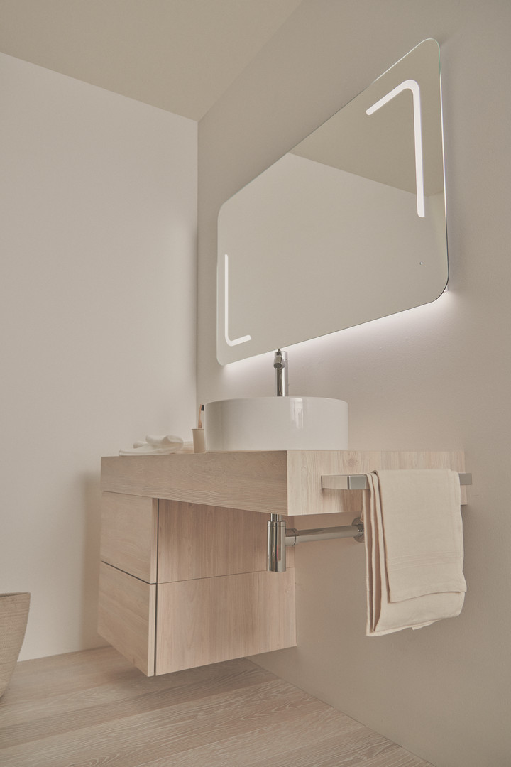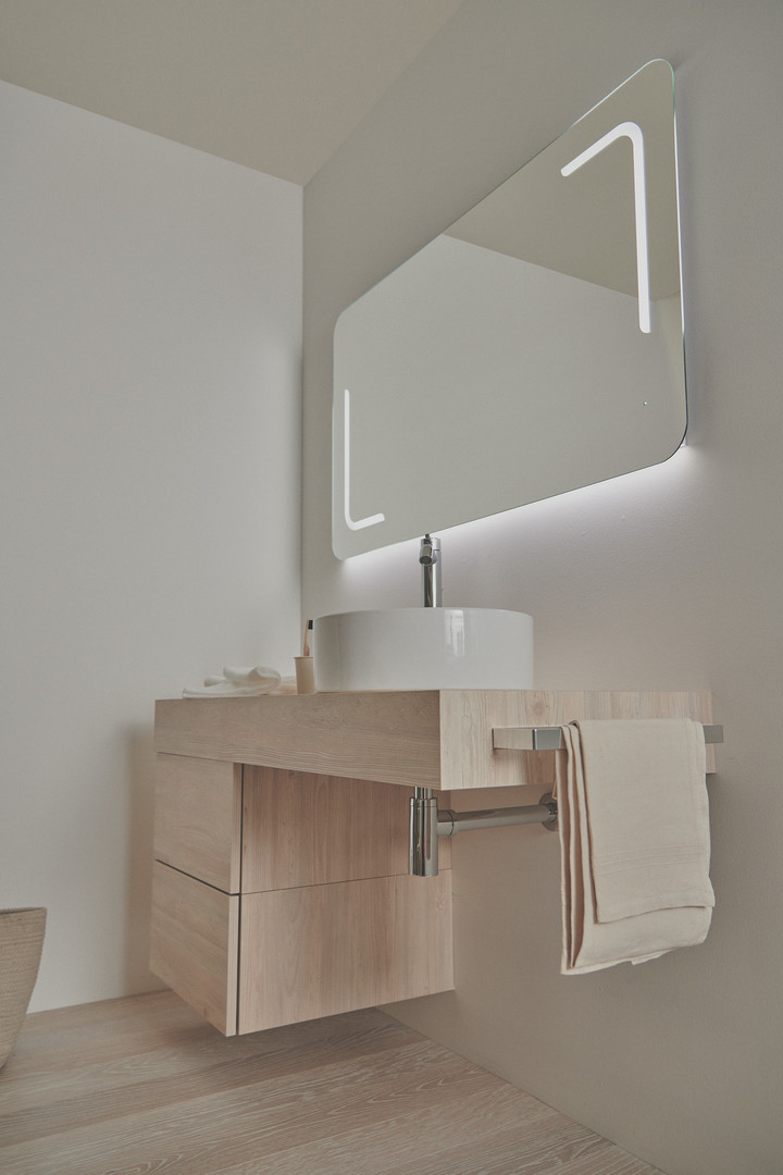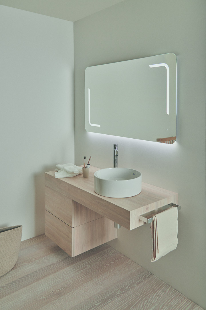 ohne Ausschnitt zur Kombination mit Waschtischen oder Schalen, 120 mm Stärke, Korpus Dekorbeschichtete Holzspanplatte 18 mm