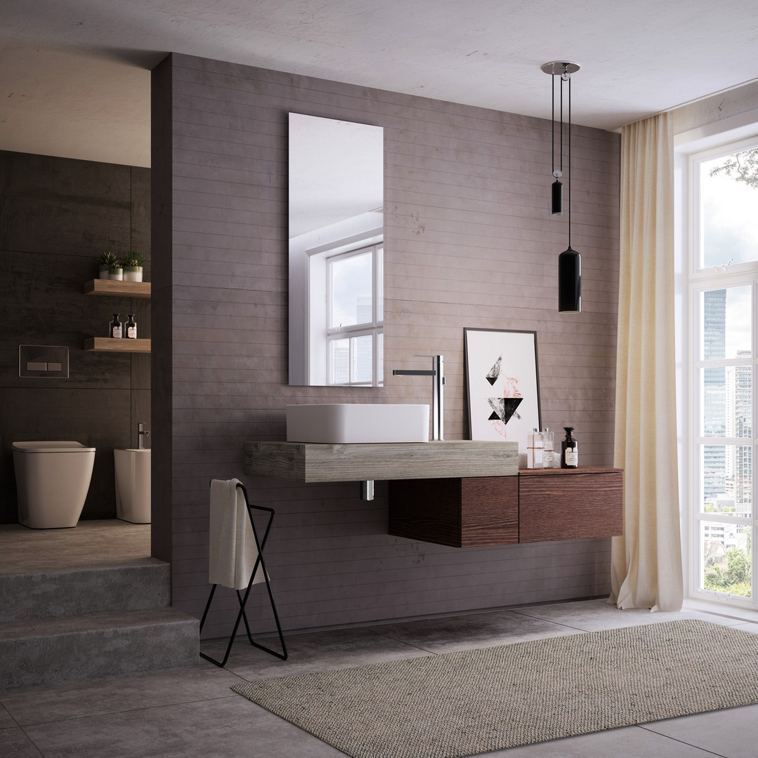 Ausführung Onda und Cubo 345 mm sind zur seitlichen Montage an Konsole oder Waschtischunterschrank, 2 verdeckte Befestigungspunkte, Ausführung Bordo ist zur frontalen Montage an Konsole oder Waschtischunterschrank, 2 verdeckte Befestigungspunkt, Ausführung Cubo 475 mm ist zur unterseitigen Montage an Konsole, 2 verdeckte Befestigungspunkte