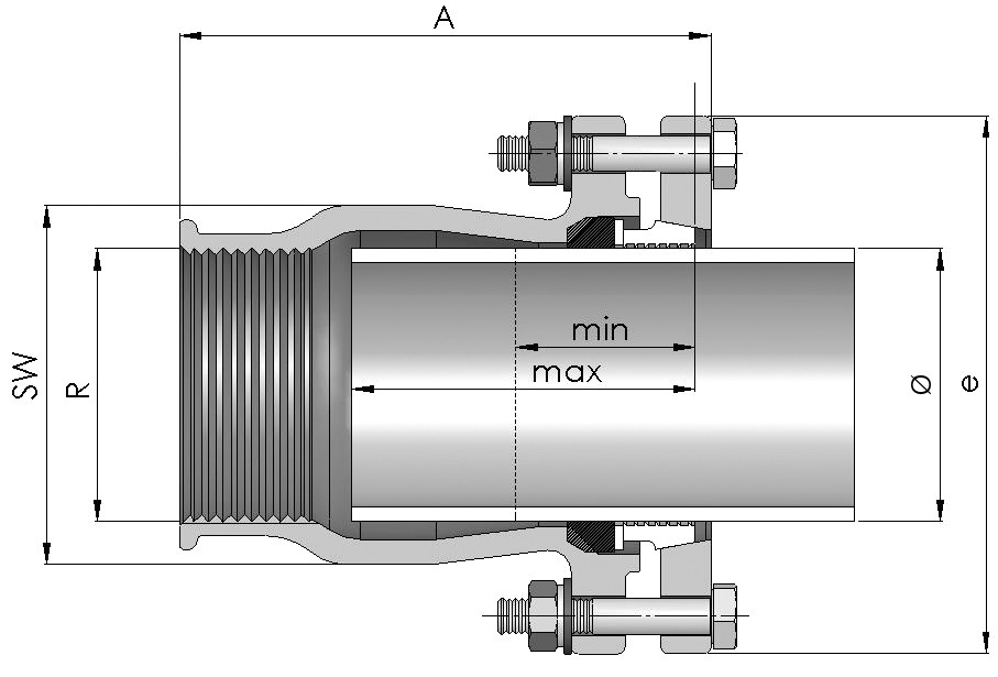 Gebo Verschraubung IF Serie 222 4" x 114,3 mm, mit IG, EPDM-Dichtung, für Stahlrohr