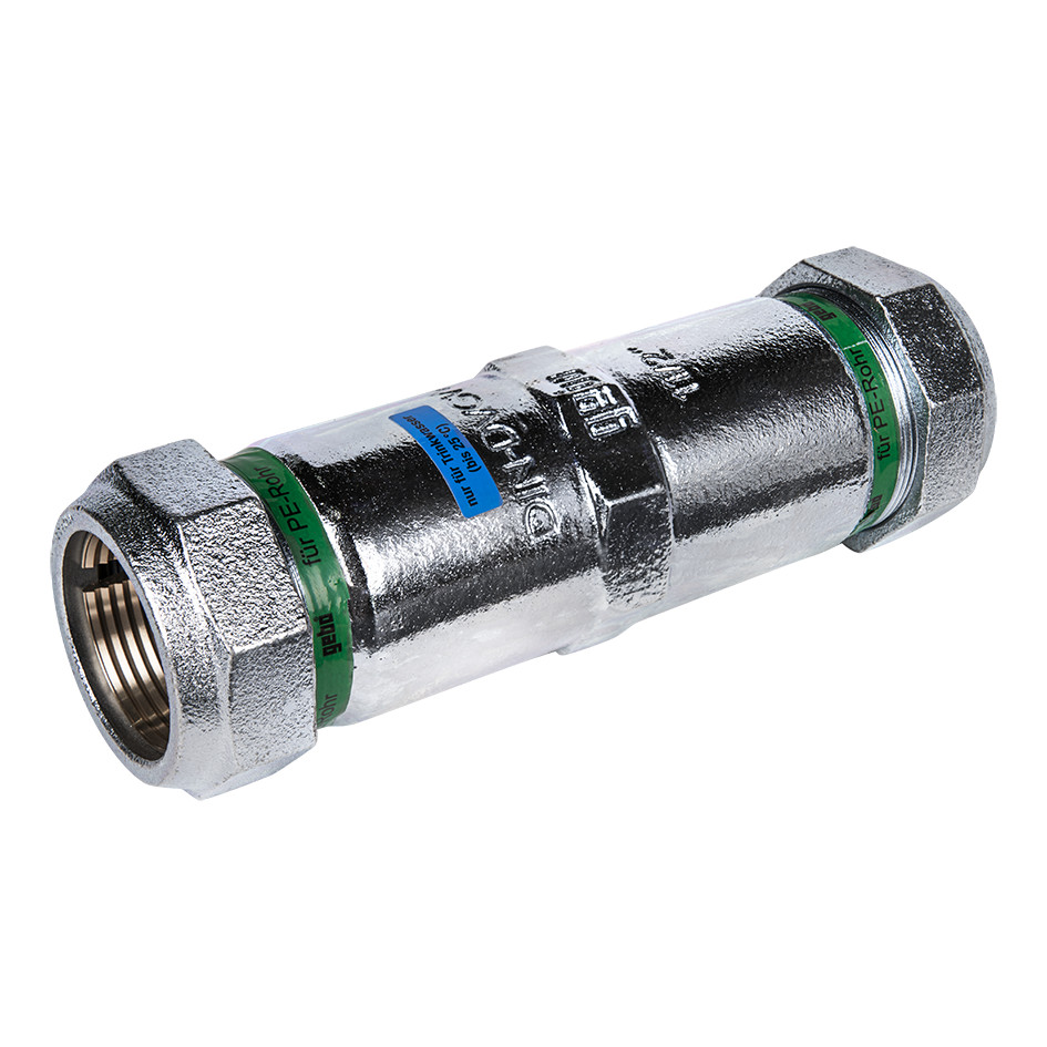 beidseitig zum Klemmen, PE 80, PE 100, PE-Xa-Rohr nach DVGW-Arbeitsblatt GW 355 A2/A3 sowie DIN 8074/75, DIN EN 12201-2 und DIN 16893, Druckstufen PE 80 und PE-XA max. PN 12,5, PE 100 max. PN 16, Temperaturen bis 25 °C, der Einsatz von Stützhülsen ist notwendig