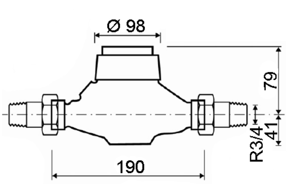 FORMAT Tec Mehrstrahl-Naßläufer K Q3 4,0 H, DN 20 (3/4"), waagrecht, 1" AG, 190mm