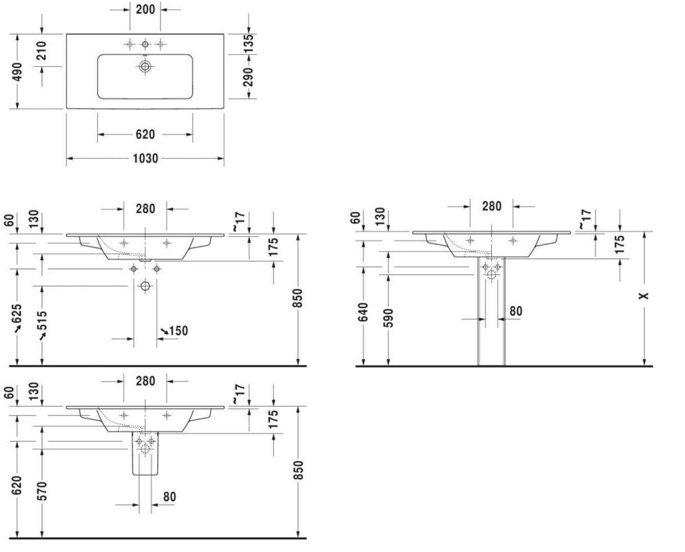 Duravit X-Like Möbelwaschtisch 103 x 49 cm, weiß, mit Hahnloch und Überlauf