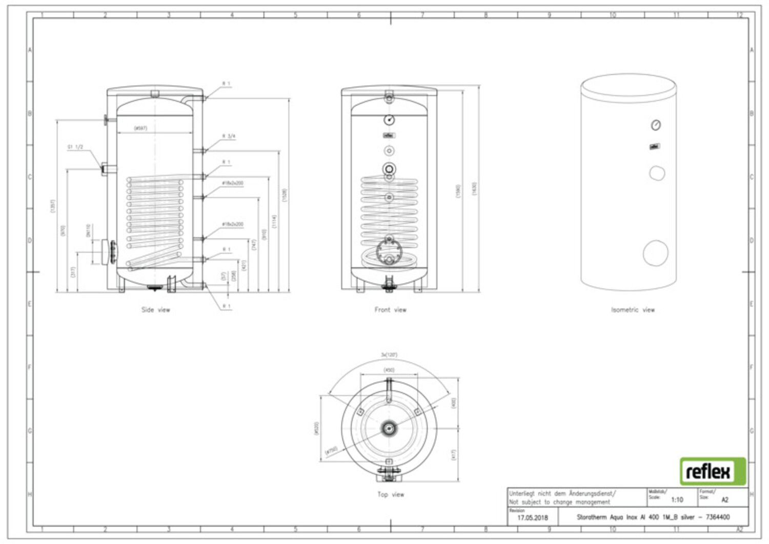 Reflex Trinkwasserspeicher Storatherm Aqua Inox AI 400/1M_B, Edelstahl, silber W817577