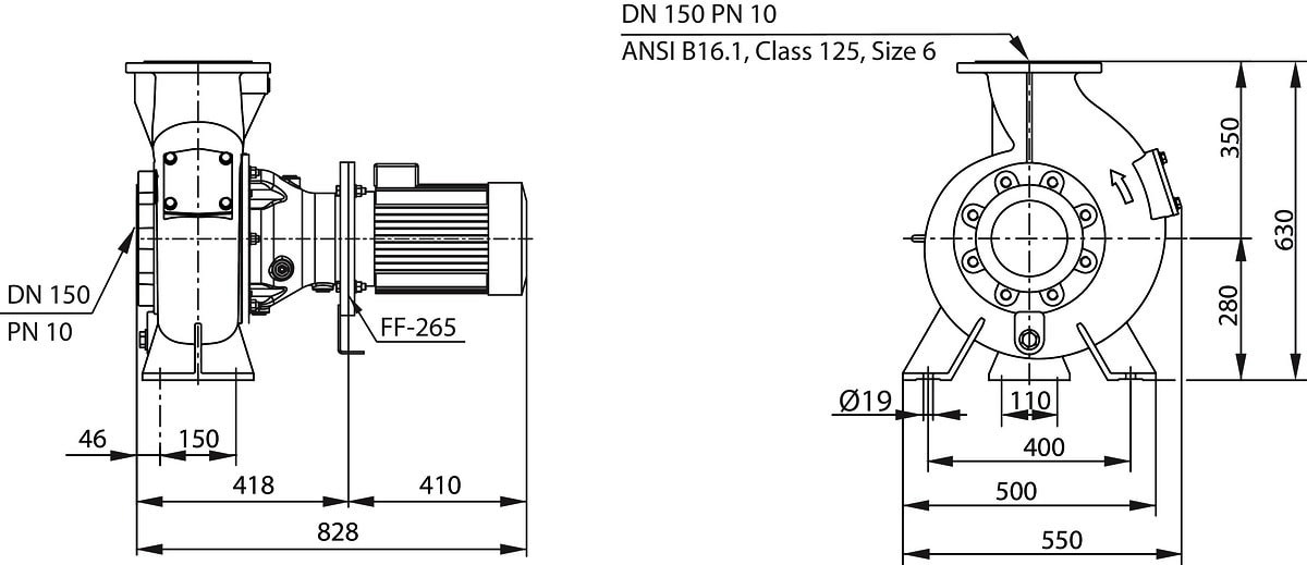Bauart Abwasser-Tauchmotorpumpe in Blockbauweise mit Normmotor für die stationäre Trockenaufstellung, zur Förderung von Rohabwasser, Abwasser mit Fäkalien nach EN 12050-1, Schmutzwasser, geliefert mit Blockaggregrat mit angebautem Normmotor in Drehstromausführung, ohne Anschlusskabel, angebauter Haltewinkel am Druckanschluss zum Anschlagen von Hebemitteln, Einbau- und Betriebsanleitung