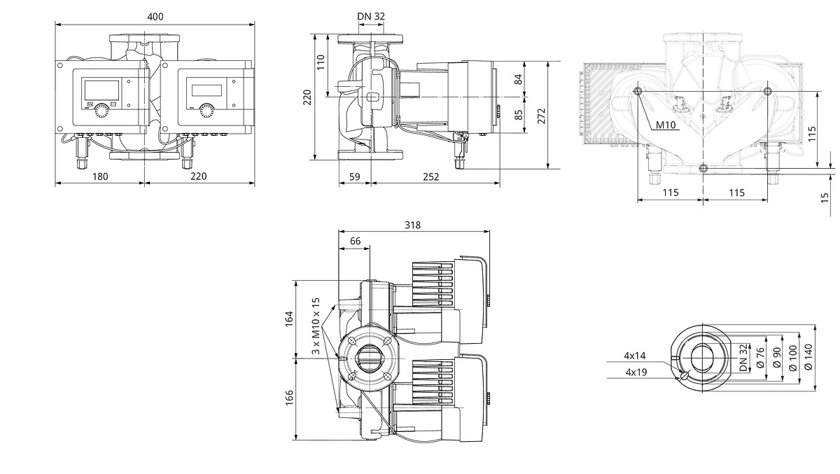 Wilo Nassläufer-Doppelpumpe Stratos MAXO-D 32/0,5-8, PN 10, Flansch