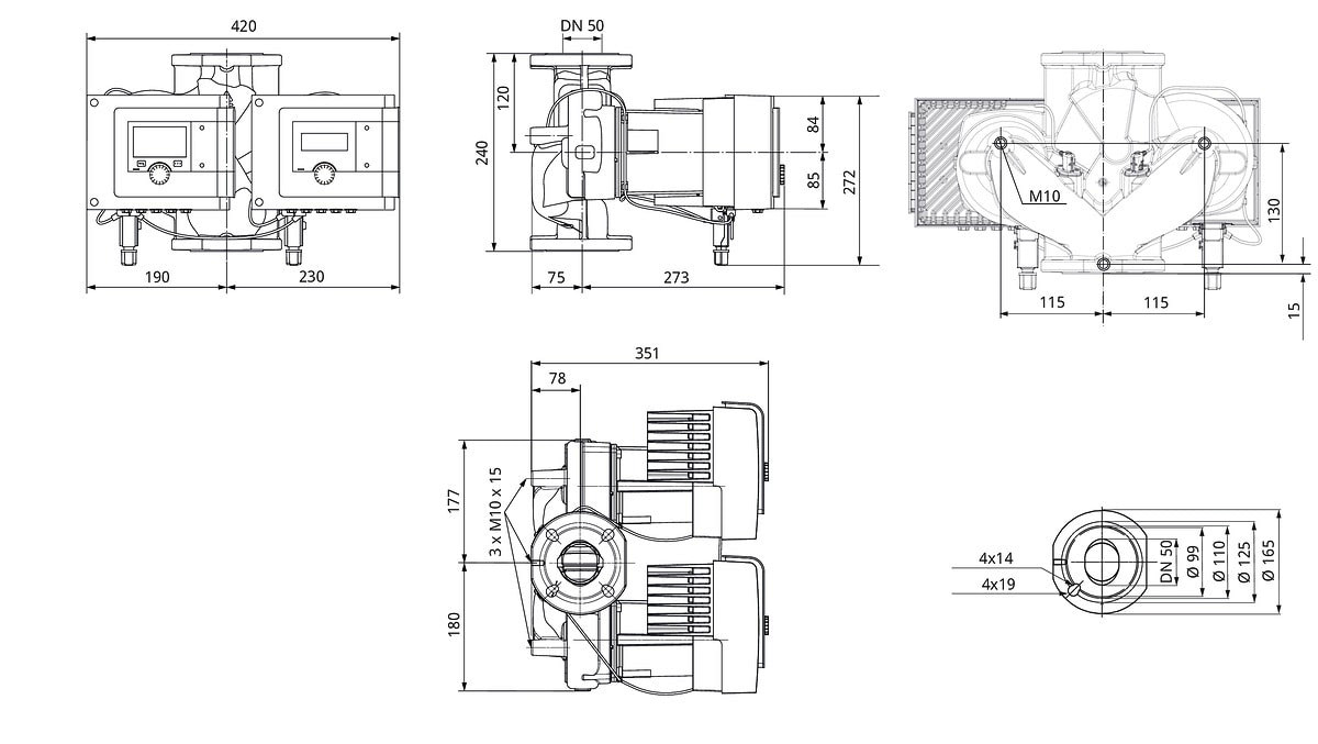 Wilo Nassläufer-Doppelpumpe Stratos MAXO-D 50/0,5-6, PN 10, Flansch