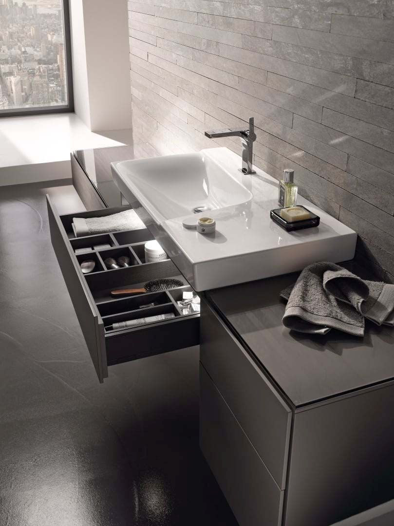 Geberit Schubladeneinsatz Xeno² 32,3 x 6,2 x 15,0 cm, H-Teilung, Melamin Holzstruktur/sculturagrau W908310