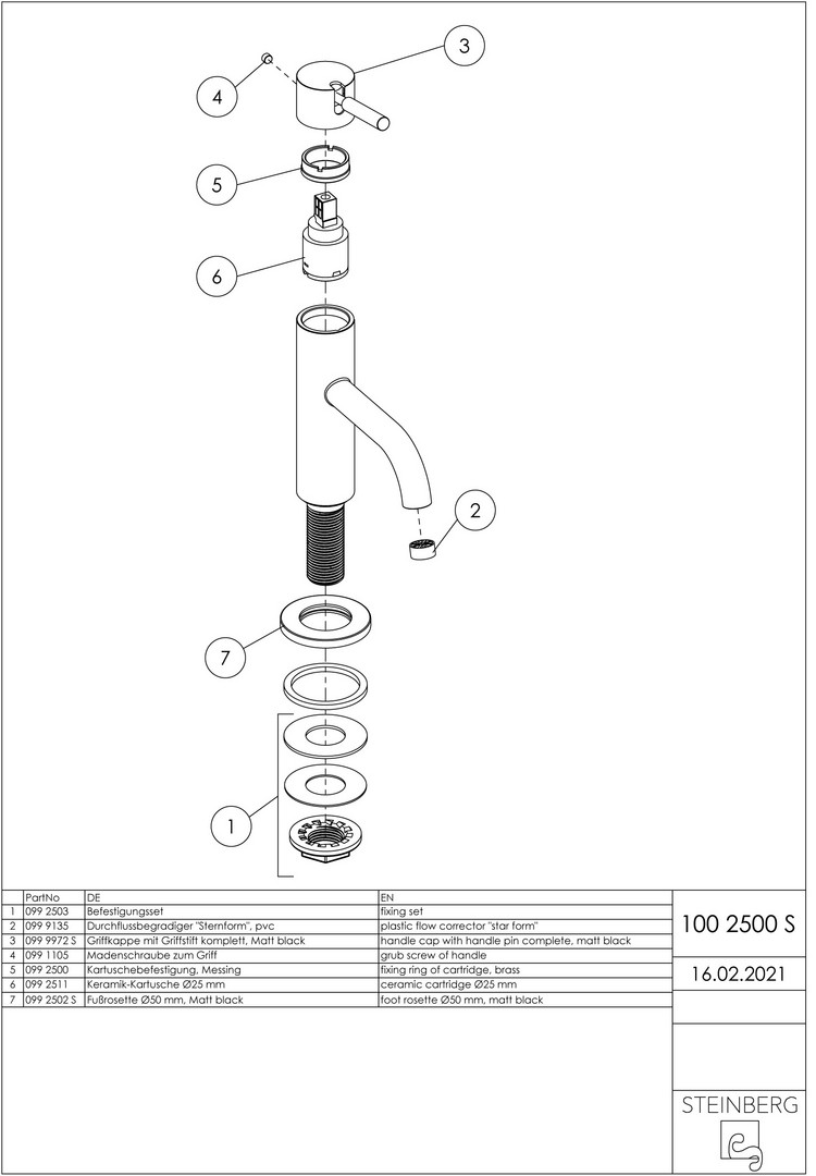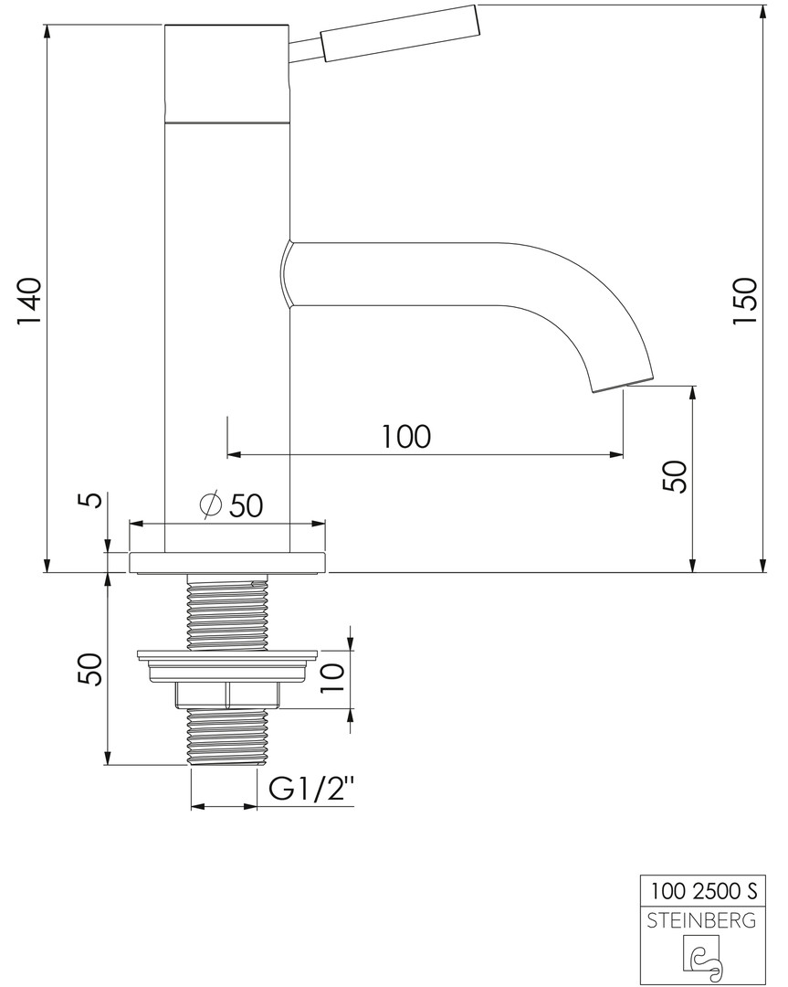 Steinberg Standventil Serie 100 Ausladung 100mm, Matt Black