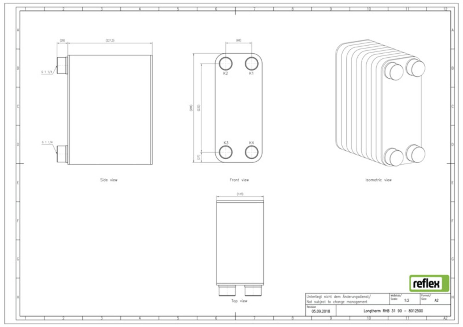 Reflex Wärmetauscher Longtherm RHB-31-90, Plattenzahl 90, gelötet, Edelstahl, eingängig