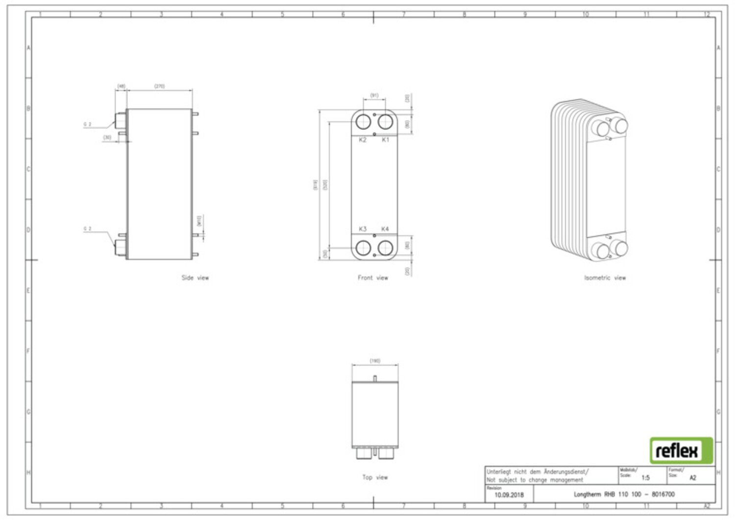 Reflex Wärmetauscher Longtherm RHB-110-100, Plattenzahl 100, gelötet, Edelstahl, eingängig
