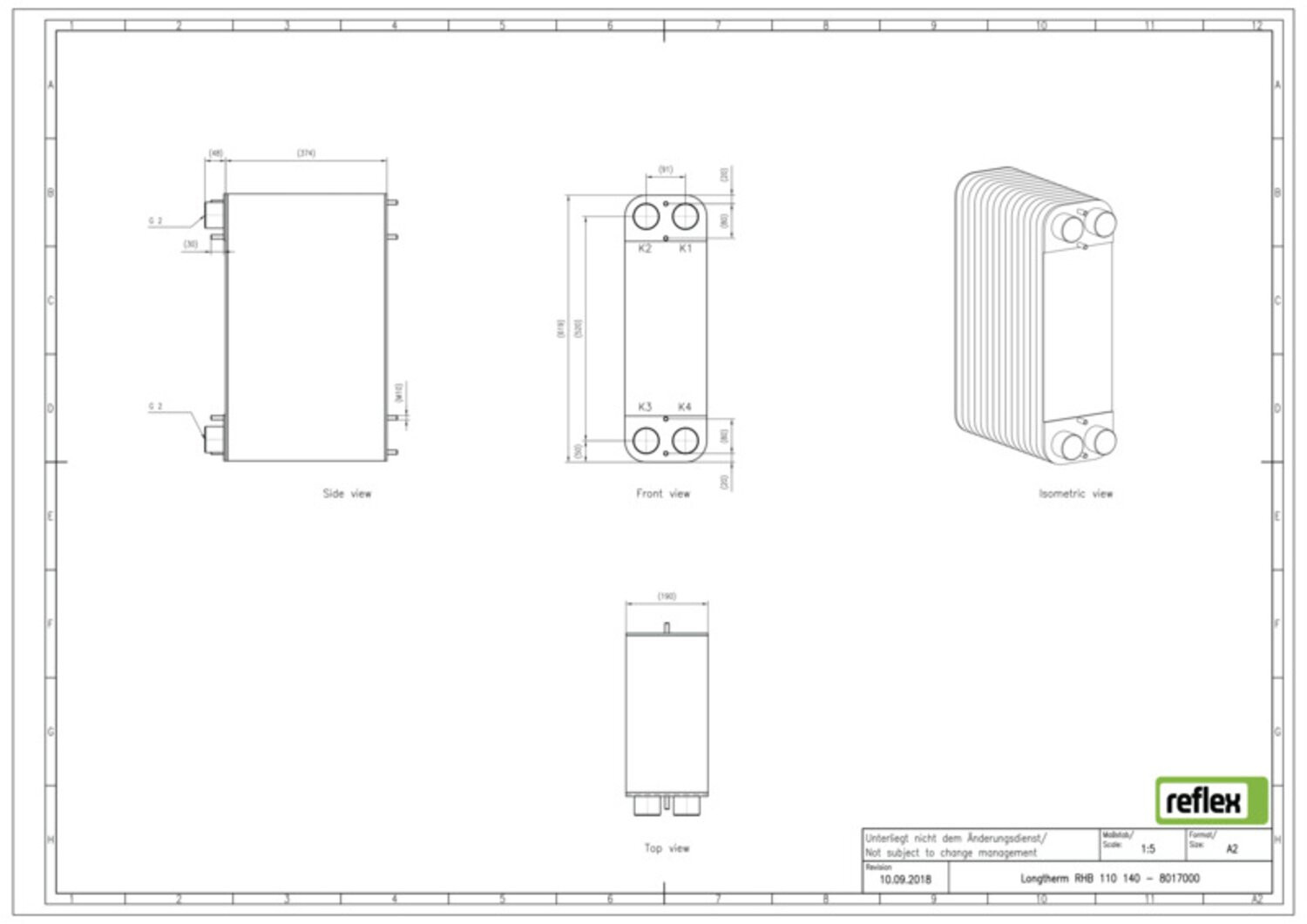 Reflex Wärmetauscher Longtherm RHB-31-10, Plattenzahl 10, gelötet, Edelstahl, eingängig W817926