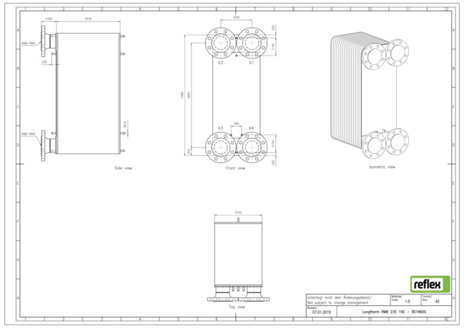 Reflex Wärmetauscher Longtherm RMB-235-160, Plattenzahl 160, gelötet, Edelstahl, eingängig