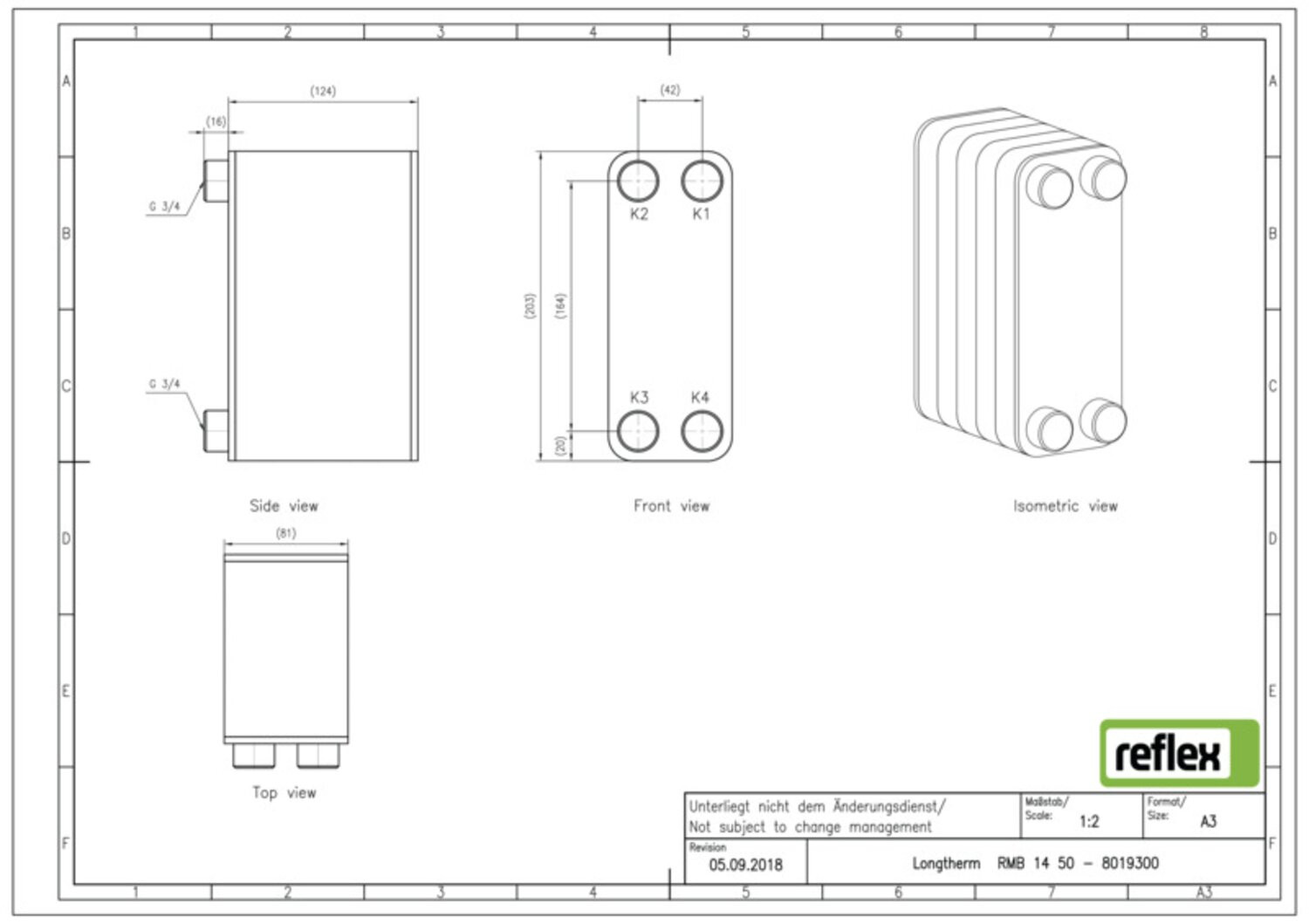 Reflex Wärmetauscher Longtherm RMB-14-50, Plattenzahl 50, gelötet, Edelstahl, eingängig