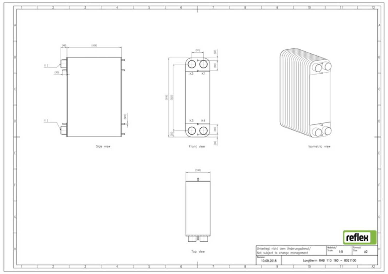 Reflex Wärmetauscher Longtherm RHB-110-160, Plattenzahl 160, gelötet, Edelstahl, eingängig