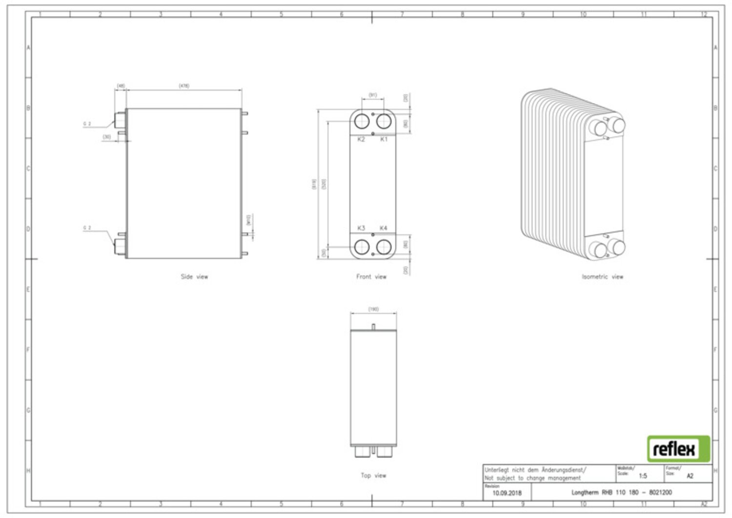 Reflex Wärmetauscher Longtherm RHB-110-180, Plattenzahl 180, gelötet, Edelstahl, eingängig