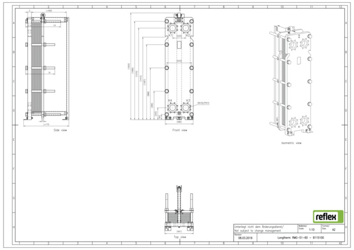 Reflex Wärmetauscher Longtherm RMG-51-60 Plattenzahl 60, geschraubt, Edelstahl