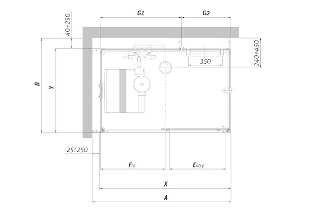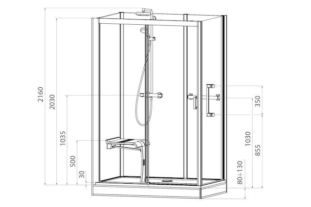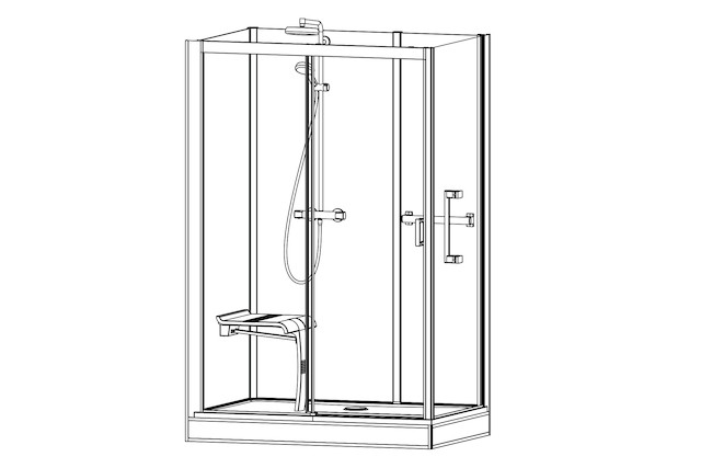 Höhe gemessen von Unterkante Duschwanne bis Oberkante Kopfbrause, zur Ausstattung gehören eine Halterung für die Montage eines Sitzes und zusätzliche Haltegriffe, Duschklappsitz optional erhältlich, Mineralgussduschwanne mit rutschfester Standfläche gem. Bewertungsklasse C DIN 51097 (PN24), niedriger Einstieg 30 mm, Tür und Rückwände mit ETC-Beschichtung (Easy to Clean), Glaselemente aus 6 mm starkem ESG, Set hansgrohe Crometta 160 mit Kopfbrause, Handbrause und Seifenschale