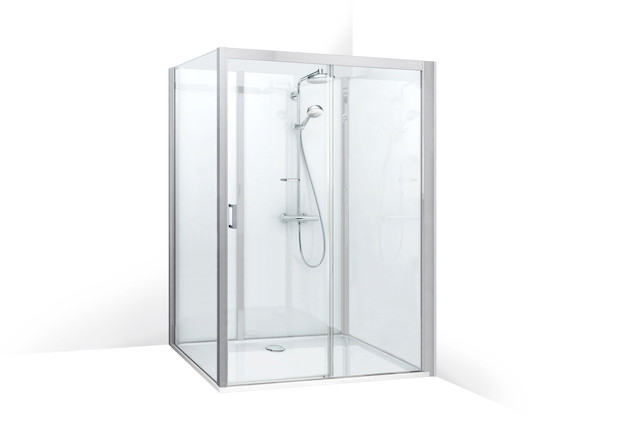 Roth Komplettdusche Vinata Spirit Eck 1160 x 877 x 2160 mm, ESG Rückwände weiß, ESG Schiebetür klar W281420