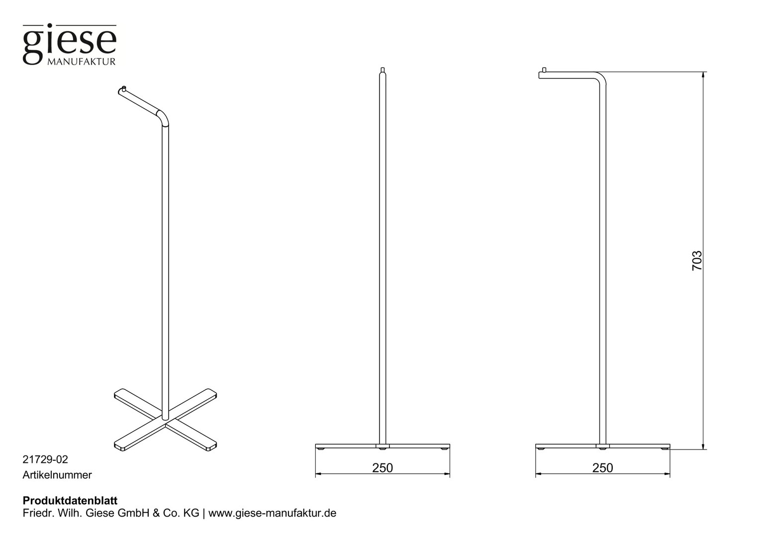 Giese WC-Bürstengarnitur Standmodell, Kristallglas satiniert, 250x250x703mm, verchromt W359519